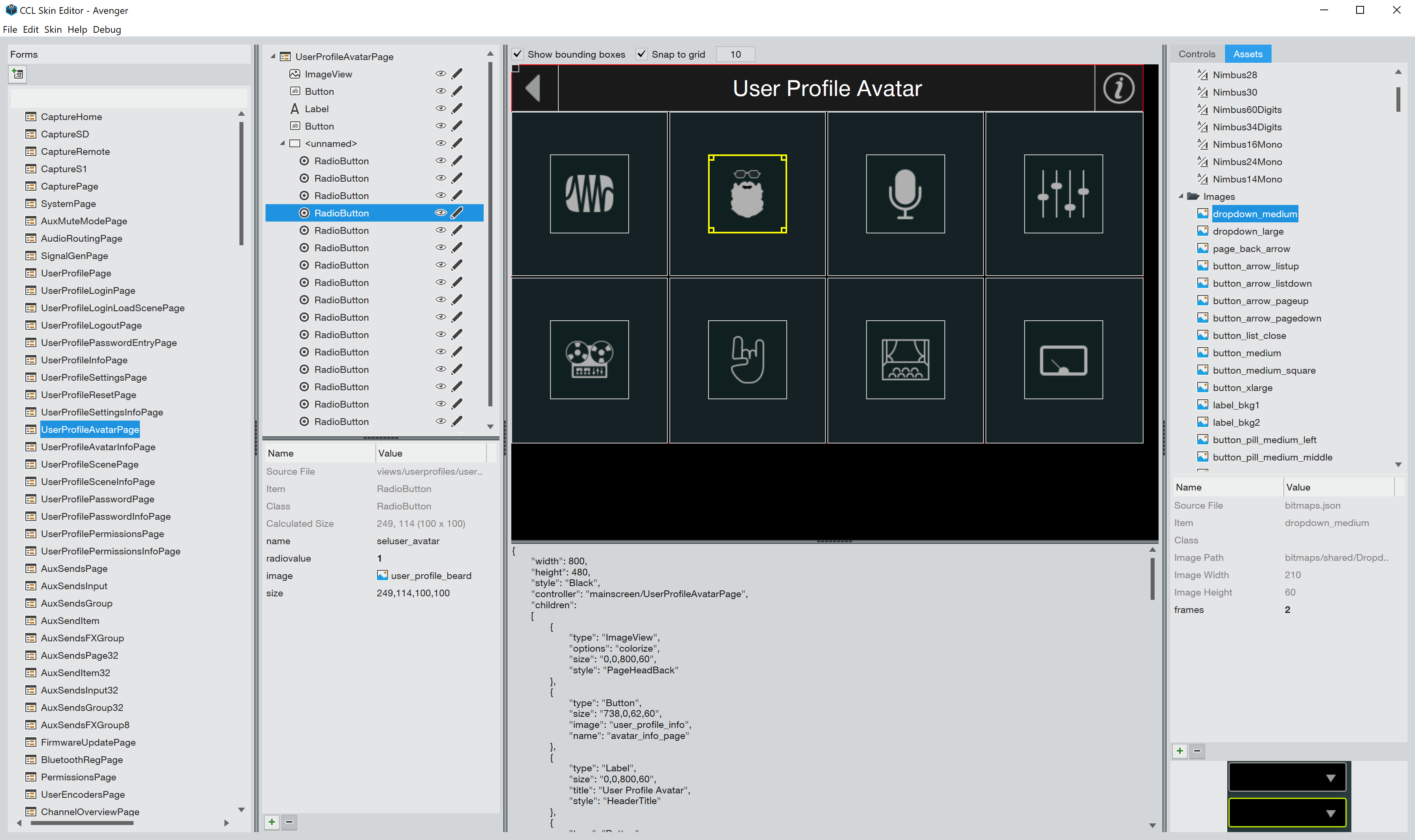 Currently a work in progress started in February 2019 for graphical editing of JSON-based skins and optional C++ export.